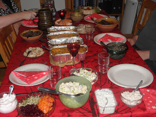 Iltapäivällä käytiin perinteitä vaalien joulukirkossa sekä viemässä isovanhempieni haudoille kynttilät. Kuuden maissa syötiin viime vuosien tapaan karppiystävällinen jouluateria. Siitä kiitos äidilleni, joka oli jälleen onnistunut laatikoiden, kastikkeiden ja muiden herkkujen valmistuksessa. Ilta jatkui ruokalevolla, TV:n tuijottelulla ja lopulta, S:nkin liityttyä seuraamme, lahjojen availulla.